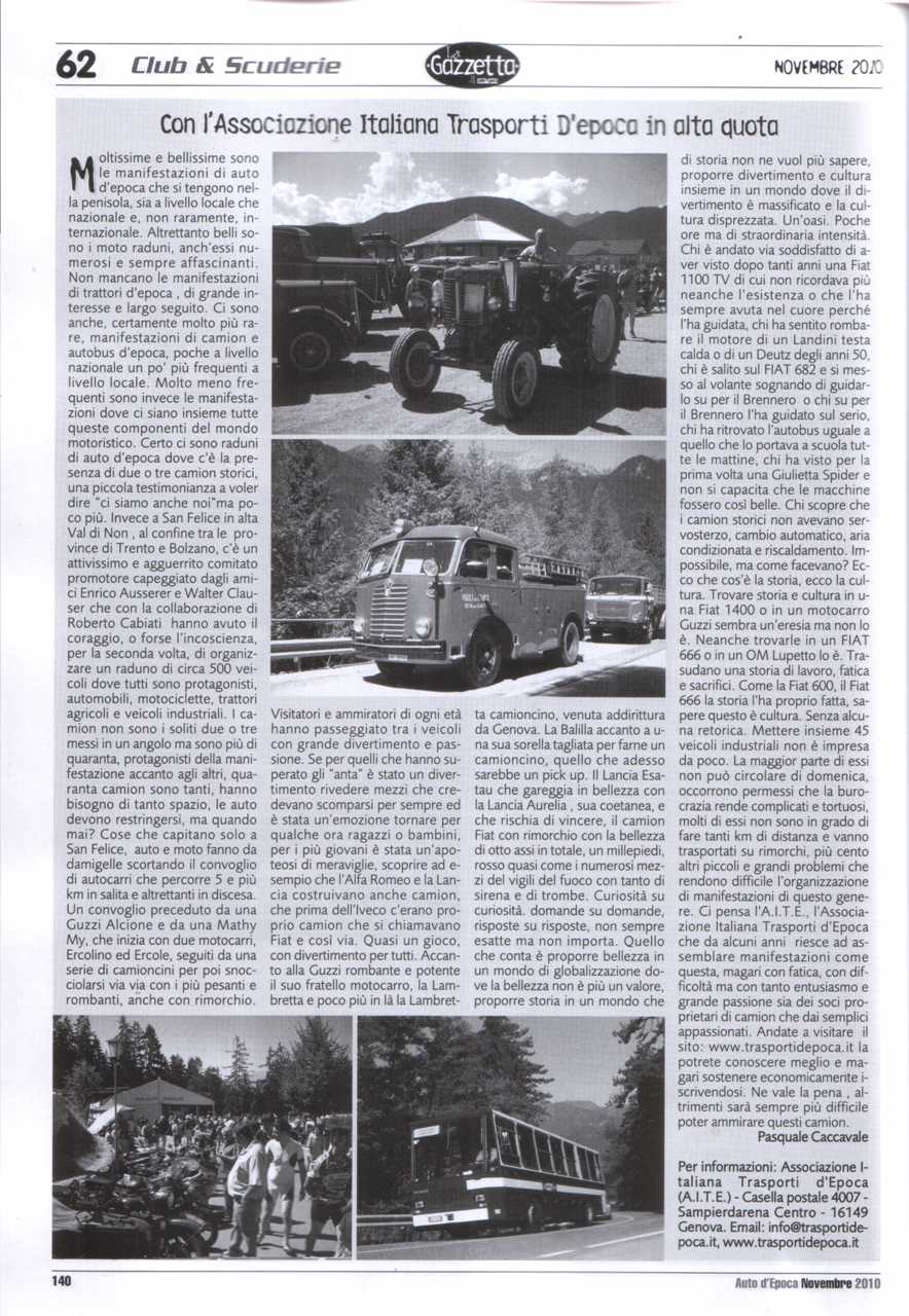 - Auto d'Epoca luglio 2010 (copertina) (articolo 1) (articolo 2)