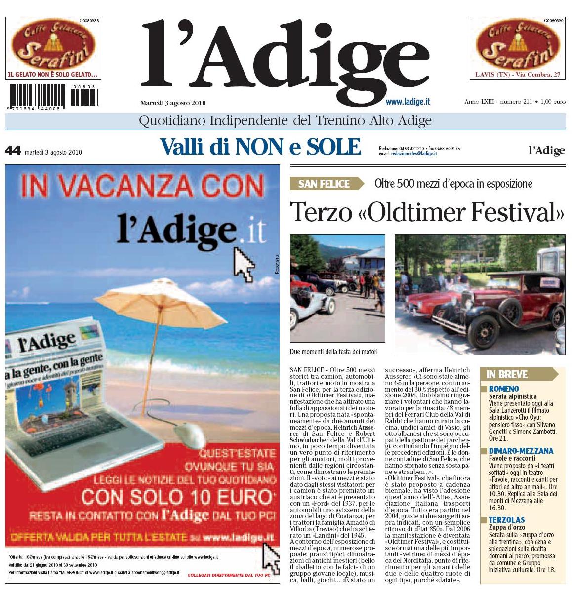 - L'Adige 3 Agosto 2010 giugno 2010 (articolo)