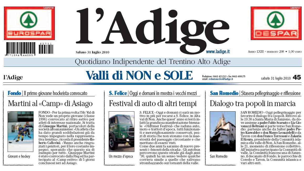 - L'Adige 31 Luglio 2010 giugno 2010 (articolo)